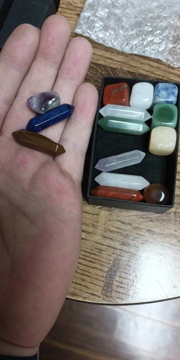 Very cute box and set up. They are a bit smaller than i realized but the price is more than fair. I feel some of the pointed stones are lacking the character needed to differentiate the different types, although a few of them are pretty nice and almost make up for it. The packing was done very very well and it arrived faster than what it said would happen. Apart from being careful about noting the size of things i would most likely buy from this place again if i see something i want.