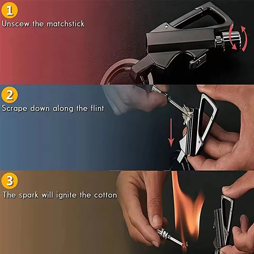 Simplify your carry and be prepared for anything. The Multifunctional Kerosene Lighter Keychain is the practical, stylish gadget every man needs.