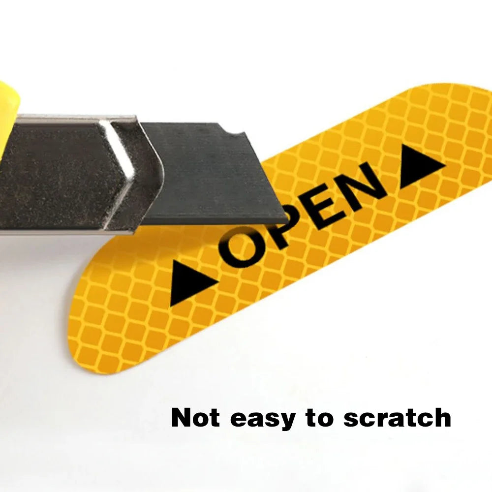 Enhance nighttime safety and visibility with this essential 4PCS Reflective Car Door Sticker set. These decals are designed to be placed on the interior edge of your car doors, serving as a bright Safety Opening Warning reflector to alert approaching traffic when the door is ajar. Easy to install and durable, they are vital Car Accessories for improving visibility both day and night.