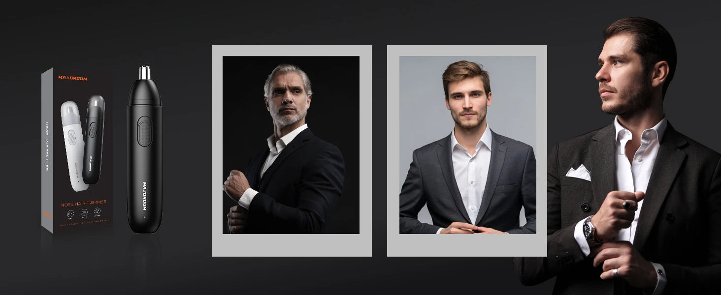The Maxgroom Nose Hair Trimmer is the ultimate upgrade for men's personal care. Featuring a revolutionary 360° Rotating Dual-Blade system, this electric shaver delivers a quick, precise, and completely painless trim for nose hair, ear hair, and eyebrows.