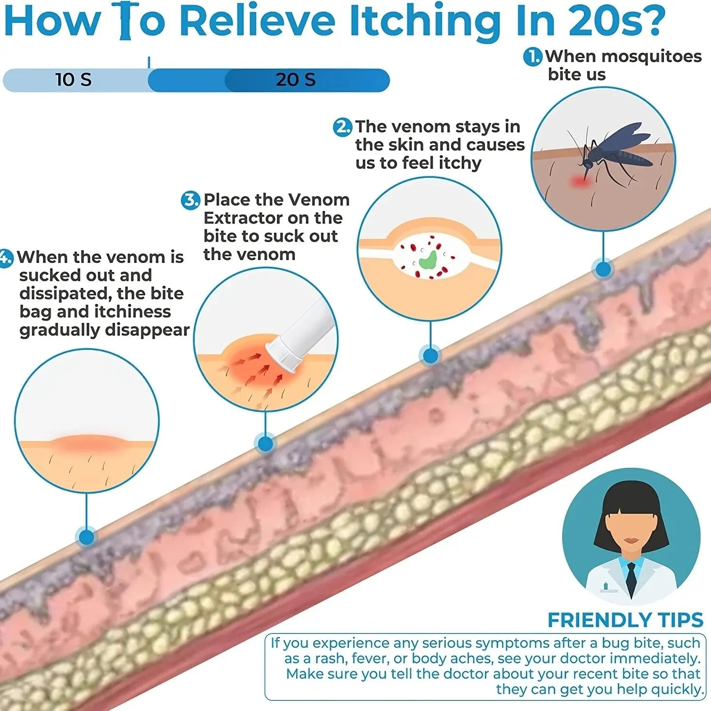 Stop the itch and reduce the swelling instantly. This Suction Tool is your simple, chemical-free key to rapid relief from insect bites.