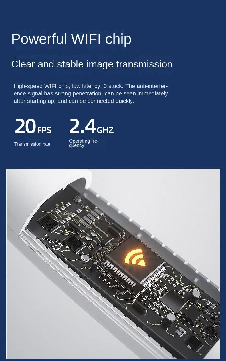 📶 Stable Wireless Connection – Built-in powerful WiFi chip ensures smooth, real-time HD image transmission to your phone.